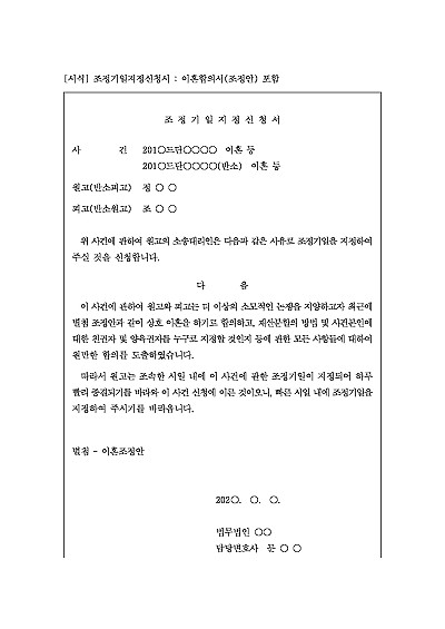 조정기일지정신청서 : 이혼합의서(조정안) 포함 요약정보 및 구매
