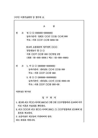 이혼무효확인 등 청구의 소 요약정보 및 구매