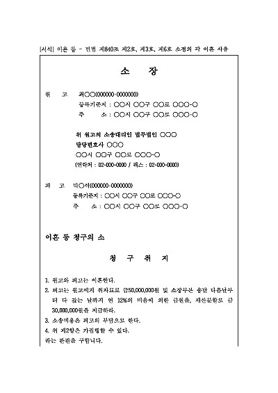 [로펌제작] 이혼 등 – 민법 제840조 제2호, 제3호, 제6호 소정의 각 이혼 사유 요약정보 및 구매