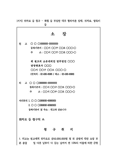 [로펌제작] 위자료 등 청구 – 폭행 등 부당한 대우 협의이혼 상태, 위자료, 양육비 등 요약정보 및 구매