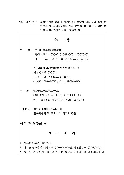 재판상 이혼 및 위자료청구