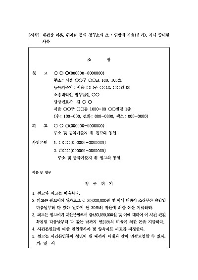 재판상 이혼, 위자료 등의 청구소의 소 : 일방적 가출(유기), 기타 중대한 사유 요약정보 및 구매