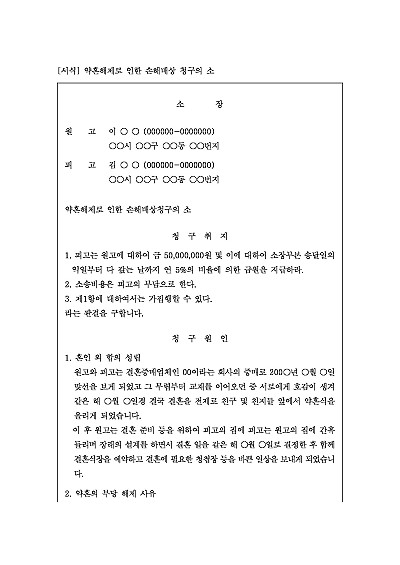 약혼해제로 인한 손해배상 청구의 소 요약정보 및 구매