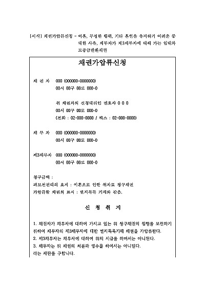 [로펌제작] 채권가압류신청 – 이혼, 부정한 행위, 기타 혼인을 유지하기 어려운 중대한 사유, 채무자가 제3채무자에 대해 가는 임대차보증금반환채권 요약정보 및 구매