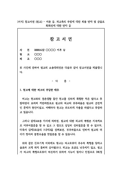 주요내용 : 변론 종결 후 판결 선고 전까지, 재판부에게 최종적인 주장 요약이나 보완 사항을 전달하기 위한 목적으로 제출하는 문서 양식임. 단 무단전재 방지 목적으로 PDF 파일로 올리니, 구매하신 후 혹 원본 파일이 필요하신 분들은 톡이나 문자, 메일, 전화 등을 주시면 작성 방법 등에 대한 간단한 무료 상담과 함께 원본 파일을 보내드리도록 하겠습니다.