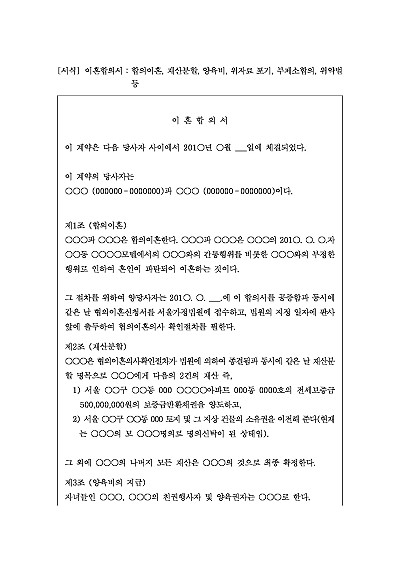 이혼합의서 : 합의이혼, 재산분할, 양육비, 위자료 포기, 부제소합의, 위약벌 등 요약정보 및 구매