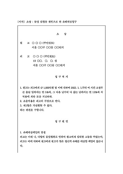 주요내용 : 이혼소송 제기전 후 상대방의 증거수집 목적으로 상대방의 대화내용을 불법적으로 감정할 경우, 당해 불법행위에 대한 손해배상청구를 목적으로 사용되어지는 소장 양식임 . 단 무단전재 방지목적으로 PDF 파일로 올리니, 구매하신 후 혹 원본 파일이 필요하신 분들은 톡이나 문자, 메일, 전화 등을 주시면 작성방법 등에 대한 간단한 무료상담과 함께 원본 파일을 보내드리도록 하겠습니다.