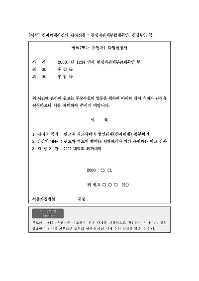 주요내용 : 부모와 자녀의 유전자를 비교하여 친자 관계를 과학적으로 확인하기 위한 목적으로 사용되어지는 신청서 양식임. 단 무단전재 방지목적으로 PDF 파일로 올리니, 구매하신 후 혹 원본 파일이 필요하신 분들은 톡이나 문자, 메일, 전화 등을 주시면 작성방법 등에 대한 간단한 무료상담과 함께 원본 파일을 보내드리도록 하겠습니다.
