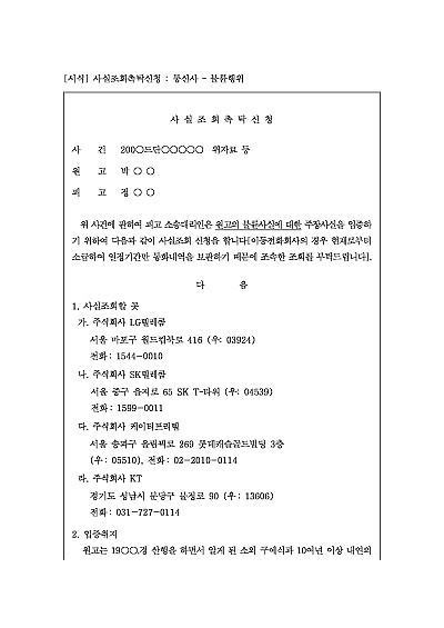 사실조회촉탁신청 : 통신사 – 불륜행위 요약정보 및 구매