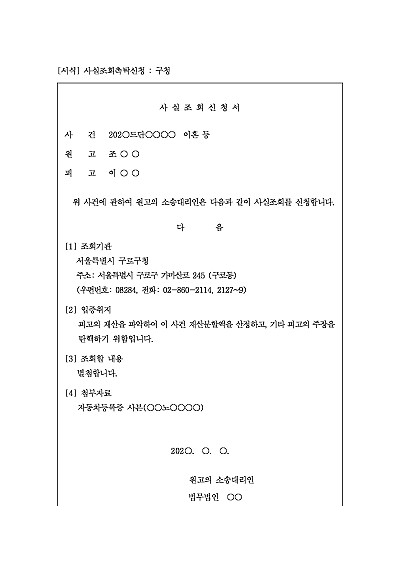 주요내용 : 이혼소송에 필요한 상대방의 인적사항 및 기타 주장사실 입증을 위한 증거수집방법으로 사용되어지는 신청서 양식임. 단 무단전재 방지목적으로 PDF 파일로 올리니, 구매하신 후 혹 원본 파일이 필요하신 분들은 톡이나 문자, 메일, 전화 등을 주시면 작성방법 등에 대한 간단한 무료상담과 함께 원본 파일을 보내드리도록 하겠습니다.