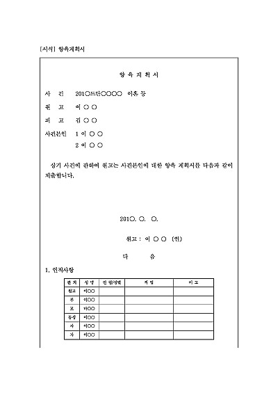 이혼 등과 같은 상황에서 자녀의 양육에 대한 구체적인 계획을 담은 문서로서, 법원이 양육권자를 결정할 때 참고하는 중요한 자료로, 누가 양육을 맡을 경우 자녀를 어떻게 돌볼 것인지(양육, 교육, 경제적 지원, 면접교섭 등)를 서면으로 구체적이고 현실적으로 작성해야 한다.