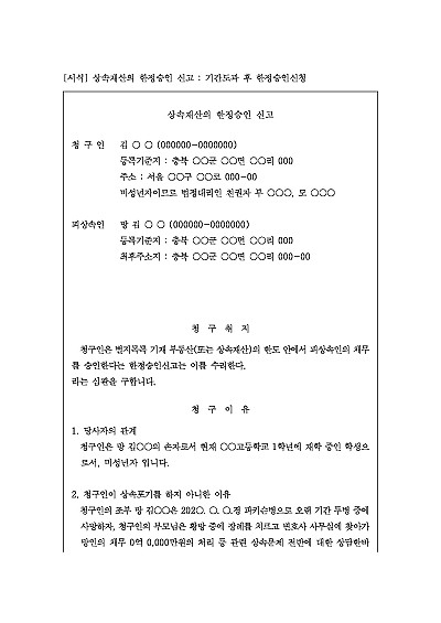 상속재산의 한정승인 신고 - 기간도과 후 한정승인신청 요약정보 및 구매