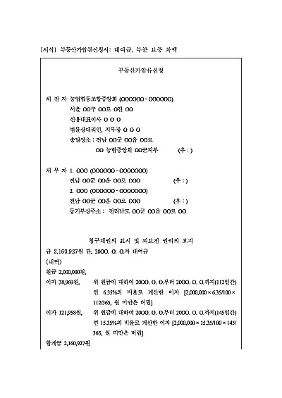 주요내용 : 대출, 연대보증, 미상환, 주채무자 및 연대보증인 상대로 한 대여금청구의 소송을 준비하면서, 책임재산 보전을 위한 목적으로 채무자 소유의 부동산에 대한 가압류신청시 사용되어지는 신청서 양식임. 단 무단전재 방지목적으로 PDF 파일로 올리니, 구매하신 후 혹 원본 파일이 필요하신 분들은 톡이나 문자, 메일, 전화 등을 주시면 작성방법 등에 대한 간단한 무료상담과 함께 원본 파일을 보내드리도록 하겠습니다.