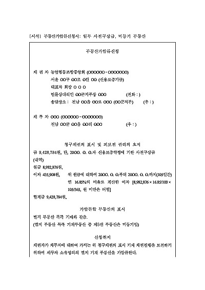 부동산가압류신청서 - 일부 사전구상금, 미등기부동산 요약정보 및 구매