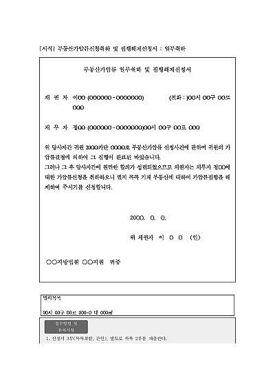주요내용 : 가압류신청 및 결정 그 후 사정에 의하여 당해 가압류결정의 일부 취소 및 집행해제를 구하기 위한 목적으로 사용되어지는 신청서 양식임. 단 무단전재 방지목적으로 PDF 파일로 올리니, 구매하신 후 혹 원본 파일이 필요하신 분들은 톡이나 문자, 메일, 전화 등을 주시면 작성방법 등에 대한 간단한 무료상담과 함께 원본 파일을 보내드리도록 하겠습니다.