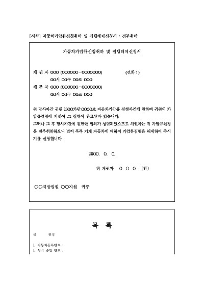 자동차가압류신청취하 및 집행해제신청서 : 전부취하 요약정보 및 구매