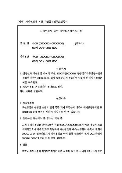 사정변경에 의한 가압류결정취소신청서 요약정보 및 구매