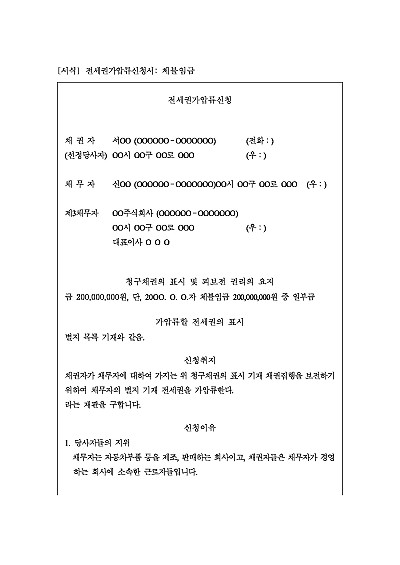 주요내용 : 근로계약 및 부도, 임금체불, 채무자를 상대로 임금등 등 청구의 소송을 준비하면서 채무자 소유의 부동산 등의 책임재산이 존재하지 아니할 경우 그 차선책으로 채무자가 제3채무자에 대하여 갖는 전세권의 보전을 목적으로 사용되어지는 신청서 양식임. 단 무단전재 방지목적으로 PDF 파일로 올리니, 구매하신 후 혹 원본 파일이 필요하신 분들은 톡이나 문자, 메일, 전화 등을 주시면 작성방법 등에 대한 간단한 무료상담과 함께 원본 파일을 보내드리도록 하겠습니다.