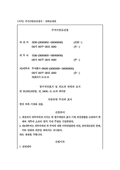 주식가압류신청서 : 대여금채권 요약정보 및 구매