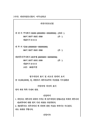 주요내용 : 채무자 가계수표 발행, 채권자 소지, 지급제시 및 지급거절, 채무자를 상대로 이득상환금청구 소송을 준비하면서 채무자 소유의 부동산 등의 책임재산이 존재하지 아니할 경우 그 차선으로 채무자의 예금 채권의 보전을 목적으로 사용되어지는 신청서 양식임. 단 무단전재 방지목적으로 PDF 파일로 올리니, 구매하신 후 혹 원본 파일이 필요하신 분들은 톡이나 문자, 메일, 전화 등을 주시면 작성방법 등에 대한 간단한 무료상담과 함께 원본 파일을 보내드리도록 하겠습니다.
