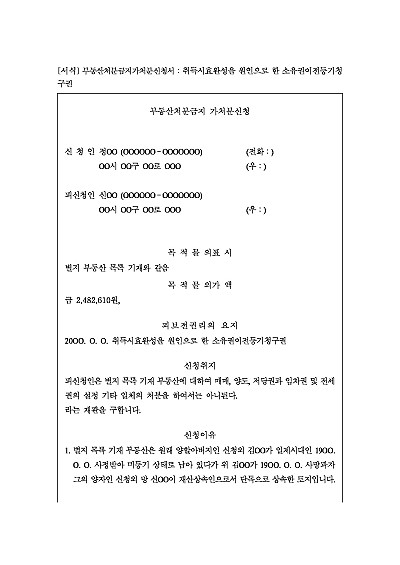 주요내용 : 20년 간 평온, 공연, 선의로 토지 점유 사용, 채무자를 상대로 시효취득을 원인으로한 소유권이전등기청구권을 피보전권리로 하여 당해 부동산의 처분을 금지하기 위한 목적으로 사용되어지는 가처분신청서 양식임. 단 무단전재 방지목적으로 PDF 파일로 올리니, 구매하신 후 혹 원본 파일이 필요하신 분들은 톡이나 문자, 메일, 전화 등을 주시면 작성방법 등에 대한 간단한 무료상담과 함께 원본 파일을 보내드리도록 하겠습니다.