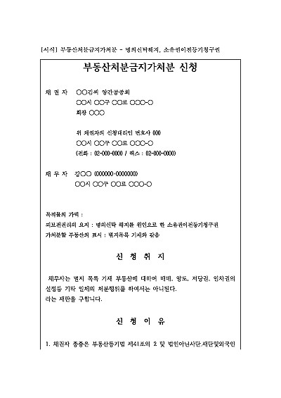 • 부동산 [처분금지 점유이전금지, 사용금지 등]
