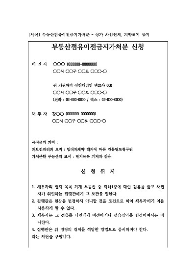 • 부동산 [처분금지 점유이전금지, 사용금지 등]