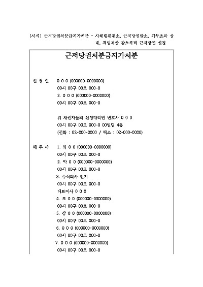 • 부동산 [처분금지 점유이전금지, 사용금지 등]