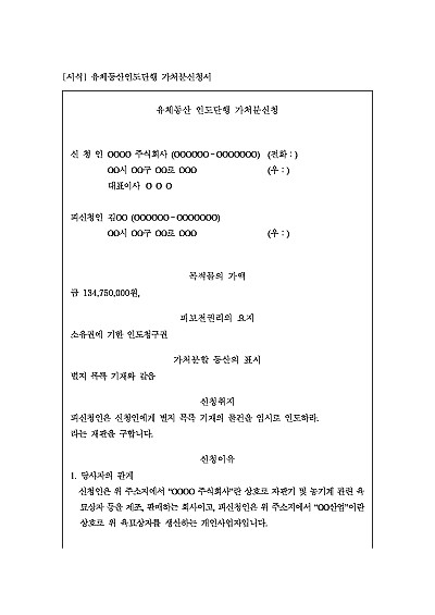 주요내용 : 생산위탁계약, 관련 장비 제공, 계약위반, 소유권에 기한 인도청구권의 행사로서 대여 장비의 인도를 구하는 본안 소송을 준비하면서 채무자가 현재 점유하고 있는 위탁장비 등이 타에 처분, 은닉되는 등의 피해를 방지하기 위한 목적으로 본안판결 전 미리 목적물을 인도받기 위한 목적으로 사용되어지는 가처분 신청서 양식임. 단 무단전재 방지목적으로 PDF 파일로 올리니, 구매하신 후 혹 원본 파일이 필요하신 분들은 톡이나 문자, 메일, 전화 등을 주시면 작성방법 등에 대한 간단한 무료상담과 함께 원본 파일을 보내드리도록 하겠습니다.