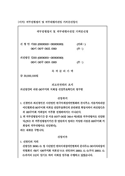 주요내용 : 이사 선임 및 임무수행, 중도해임, 해임사유 경미, 부당한 해임, 신규이사 선임, 이사 선임의 부존재 및 무효확인 본안의 소송을 준비하면서 중대한 피해방지 목적으로 본안판결 전까지 현상유지를 위한 목적으로 사용되어지는 가처분 신청서 양식임. 단 무단전재 방지목적으로 PDF 파일로 올리니, 구매하신 후 혹 원본 파일이 필요하신 분들은 톡이나 문자, 메일, 전화 등을 주시면 작성방법 등에 대한 간단한 무료상담과 함께 원본 파일을 보내드리도록 하겠습니다.
