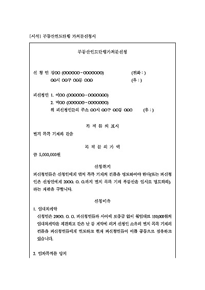 주요내용 : 임대차계약, 임차목적물 방치, 훼손 등 손해발생 우려 상당, 채무자를 상대로 소유권에 기한 반환청구권의 행사로서 건물인도를 구하는 본안 소송을 준비 중, 방치중인 목적의 훼손 및 화재 등 중대한 손해를 방지하기 위한 목적으로 본안판결 전 미리 철거인도를 받기 위한 목적으로 사용되어지는 가처분 신청서 양식임. 단 무단전재 방지목적으로 PDF 파일로 올리니, 구매하신 후 혹 원본 파일이 필요하신 분들은 톡이나 문자, 메일, 전화 등을 주시면 작성방법 등에 대한 간단한 무료상담과 함께 원본 파일을 보내드리도록 하겠습니다.