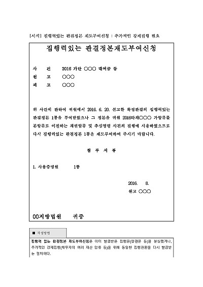 집행력있는 판결정본 재도부여신청 : 추가적인 강제집행 필요 요약정보 및 구매