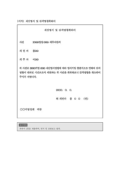 주요내용 : 명시신청, 명시기일 불출석에 따른 감치명령, 원인이 된 명시명령 취하를 원인으로 감치명령의 취소를 구하기 위한 목적으로 사용되어지는 신청서 양식임. 단 무단전재 방지목적으로 PDF 파일로 올리니, 구매하신 후 혹 원본 파일이 필요하신 분들은 톡이나 문자, 메일, 전화 등을 주시면 작성방법 등에 대한 간단한 무료상담과 함께 원본 파일을 보내드리도록 하겠습니다.