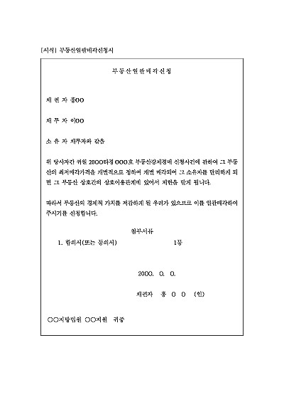 주요내용 : 여러 부동산을 하의 집단으로 묶어 매각하는 것이 더 효율적이라고 판단될 경우 채권자 등의 신청에 따라 여러 개의 부동산을 한꺼번에 매각하도록 법원에 그 결정을 구하기 위한 목적으로 사용되어지는 신청서 양식임. 단 무단전재 방지목적으로 PDF 파일로 올리니, 구매하신 후 혹 원본 파일이 필요하신 분들은 톡이나 문자, 메일, 전화 등을 주시면 작성방법 등에 대한 간단한 무료상담과 함께 원본 파일을 보내드리도록 하겠습니다.