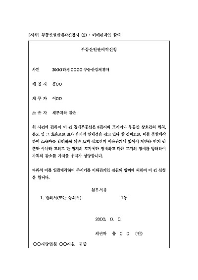 주요내용 : 여러 부동산을 하의 집단으로 묶어 매각하는 것이 더 효율적이라고 판단될 경우 채권자 등의 신청(이해관계인 합의)에 따라 여러 개의 부동산을 한꺼번에 매각하도록 법원에 그 결정을 구하기 위한 목적으로 사용되어지는 신청서 양식임. 단 무단전재 방지목적으로 PDF 파일로 올리니, 구매하신 후 혹 원본 파일이 필요하신 분들은 톡이나 문자, 메일, 전화 등을 주시면 작성방법 등에 대한 간단한 무료상담과 함께 원본 파일을 보내드리도록 하겠습니다.
