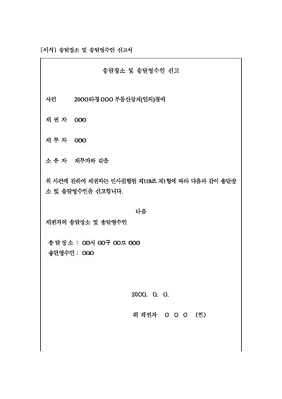 주요내용 : 경매절차 진행시 당사자 본인이 관련 서류 등을 직접 수령하기 곤란한 상황이 있는 경우 송달장소 및 송달여수인 신고를 통해 대신 관련 서류들을 송달받게 할 목적으로 사용되지는 신고서 양식임. 단 무단전재 방지목적으로 PDF 파일로 올리니, 구매하신 후 혹 원본 파일이 필요하신 분들은 톡이나 문자, 메일, 전화 등을 주시면 작성방법 등에 대한 간단한 무료상담과 함께 원본 파일을 보내드리도록 하겠습니다.