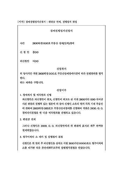 주요내용 : 매각절차 진행, 판결금 변제, 집행정지결정, 청구이의의 소제기, 판결선고시까지 당해 절차의 집행정지를 구하기 위한 목적으로 사용되어지는 신청서 양식임. 단 무단전재 방지목적으로 PDF 파일로 올리니, 구매하신 후 혹 원본 파일이 필요하신 분들은 톡이나 문자, 메일, 전화 등을 주시면 작성방법 등에 대한 간단한 무료상담과 함께 원본 파일을 보내드리도록 하겠습니다.