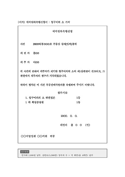 주요내용 : 매각절차 진행, 청구이의의 소 제기, 소 기각 후 매각절차 속행을 구하기 위한 목적으로 사용되어지는 신청서 양식임. 단 무단전재 방지목적으로 PDF 파일로 올리니, 구매하신 후 혹 원본 파일이 필요하신 분들은 톡이나 문자, 메일, 전화 등을 주시면 작성방법 등에 대한 간단한 무료상담과 함께 원본 파일을 보내드리도록 하겠습니다.