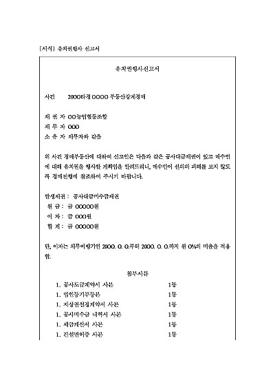 주요내용 : 경매개시, 경매목적물과 관련된 채권존재, 유치권행사 계획, 그 사실을 고지하여 선의의 피해자 방지를 목적으로 사용되어지는 신청서 양식임. 단 무단전재 방지목적으로 PDF 파일로 올리니, 구매하신 후 혹 원본 파일이 필요하신 분들은 톡이나 문자, 메일, 전화 등을 주시면 작성방법 등에 대한 간단한 무료상담과 함께 원본 파일을 보내드리도록 하겠습니다.