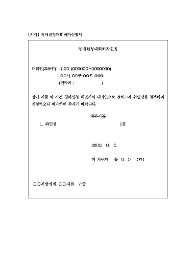 주요내용 : 경매신청시 대리인을 통한 절차진행을 위한 목적으로 사용되어지는 신청서 양식임. 단 무단전재 방지목적으로 PDF 파일로 올리니, 구매하신 후 혹 원본 파일이 필요하신 분들은 톡이나 문자, 메일, 전화 등을 주시면 작성방법 등에 대한 간단한 무료상담과 함께 원본 파일을 보내드리도록 하겠습니다.