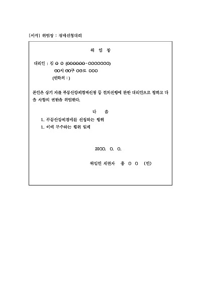 주요내용 : 변제충당을 위한 강제집행절차에 관한 일체의 절차를 대리인에게 위임하기 위한 목적으로 사용되어지는 양식임. 단 무단전재 방지목적으로 PDF 파일로 올리니, 구매하신 후 혹 원본 파일이 필요하신 분들은 톡이나 문자, 메일, 전화 등을 주시면 작성방법 등에 대한 간단한 무료상담과 함께 원본 파일을 보내드리도록 하겠습니다.