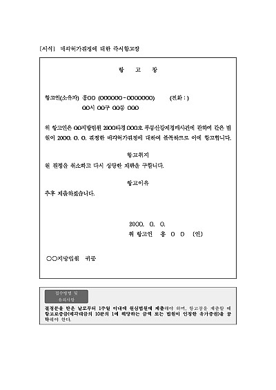 주요내용 : 부동산강제경매사건에 관한 매각허가결정에 불복하고자 할 때 사용되어지는 항고장 양식임. 단 무단전재 방지목적으로 PDF 파일로 올리니, 구매하신 후 혹 원본 파일이 필요하신 분들은 톡이나 문자, 메일, 전화 등을 주시면 작성방법 등에 대한 간단한 무료상담과 함께 원본 파일을 보내드리도록 하겠습니다.