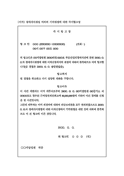 주요내용 : 경매개시결정, 이의신청, 채무액 모두 변제, 경매개시결정 이의의 기각 결정에 대한 즉시 항고시 사용되어지는 항고장 양식임. 단 무단전재 방지목적으로 PDF 파일로 올리니, 구매하신 후 혹 원본 파일이 필요하신 분들은 톡이나 문자, 메일, 전화 등을 주시면 작성방법 등에 대한 간단한 무료상담과 함께 원본 파일을 보내드리도록 하겠습니다.