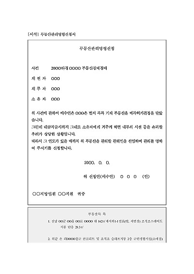부동산관리명령신청서 요약정보 및 구매