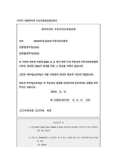 주요내용 : 경매낙찰가가 잔금을 납부하기 전까지 채무자나 소유자 등의 부당한 부동산 가치 감소행위를 막고 부동산을 현상 그대로 보존하기 위한 목적으로 사용되어지는 신청서 양식임. 단 무단전재 방지목적으로 PDF 파일로 올리니, 구매하신 후 혹 원본 파일이 필요하신 분들은 톡이나 문자, 메일, 전화 등을 주시면 작성방법 등에 대한 간단한 무료상담과 함께 원본 파일을 보내드리도록 하겠습니다.