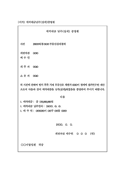 매각대금납부(상계)증명원 요약정보 및 구매
