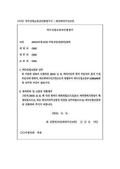 주요내용 : 입찰자가 납부한 보증금을 입찰 무효 또는취소 등의 사유로 인해 돌려받기 위한 목적으로 사용되어지는 신청서 양식임. 단 무단전재 방지목적으로 PDF 파일로 올리니, 구매하신 후 혹 원본 파일이 필요하신 분들은 톡이나 문자, 메일, 전화 등을 주시면 작성방법 등에 대한 간단한 무료상담과 함께 원본 파일을 보내드리도록 하겠습니다.