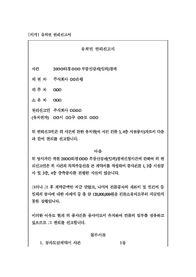유치권 권리신고서 요약정보 및 구매