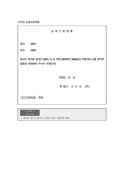 주요내용 : 소제증명원은 배당공탁 유지 및 배당확정 저지 등을 목적으로 관련 소송이 제기되었음을 법원에 알리기 위한 목적으로 사용되어지는 양식임. 단 무단전재 방지목적으로 PDF 파일로 올리니, 구매하신 후 혹 원본 파일이 필요하신 분들은 톡이나 문자, 메일, 전화 등을 주시면 작성방법 등에 대한 간단한 무료상담과 함께 원본 파일을 보내드리도록 하겠습니다.