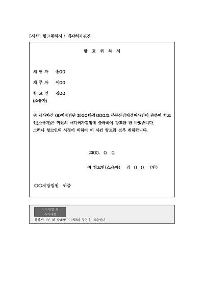 주요내용 : 매각허가결정에 불복, 항고, 사정에 의하여 항고 전부 취하시 사용되어지는 양식임. 단 무단전재 방지목적으로 PDF 파일로 올리니, 구매하신 후 혹 원본 파일이 필요하신 분들은 톡이나 문자, 메일, 전화 등을 주시면 작성방법 등에 대한 간단한 무료상담과 함께 원본 파일을 보내드리도록 하겠습니다.